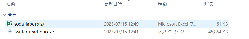 6.ツールと同じ場所にTwitterIDのエクセルファイルが出力されます