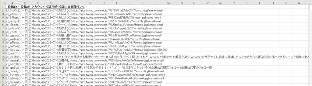 エクセルファイルなので絵文字は表示されません(文字化けあり)